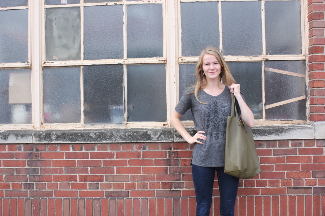 Go to for comfy shirts, affordable jeans, and fun olive totes.