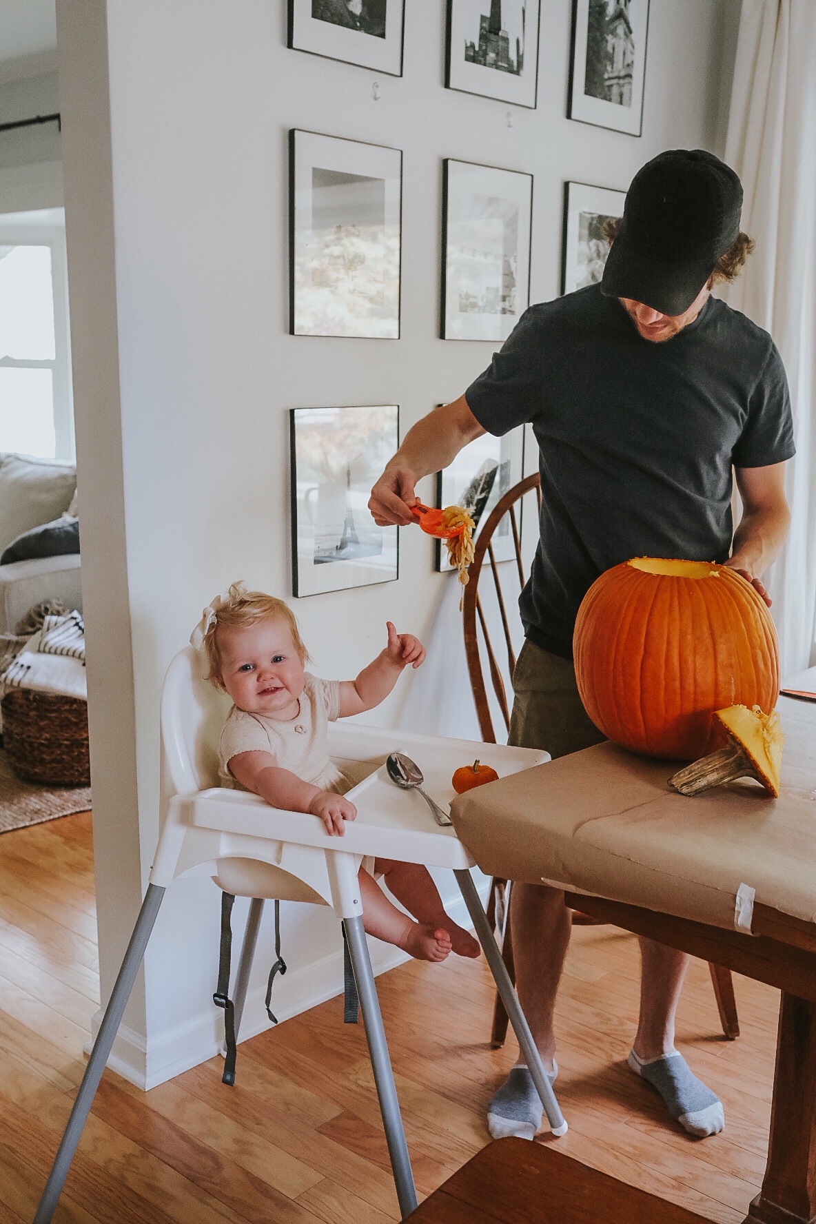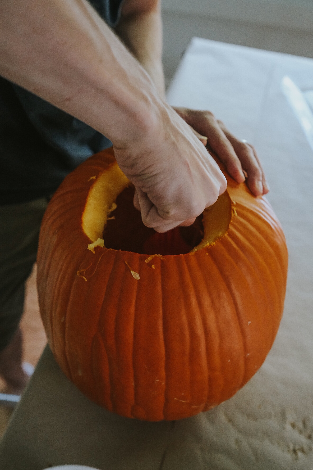 We stopped at a teeny tiny local farm one afternoon for a pumpkin to carve. The weather felt like summer but we were determined to bring on the fall in the house. Popped on Ghostbusters and carved up the sweetest little jack -o-lantern.