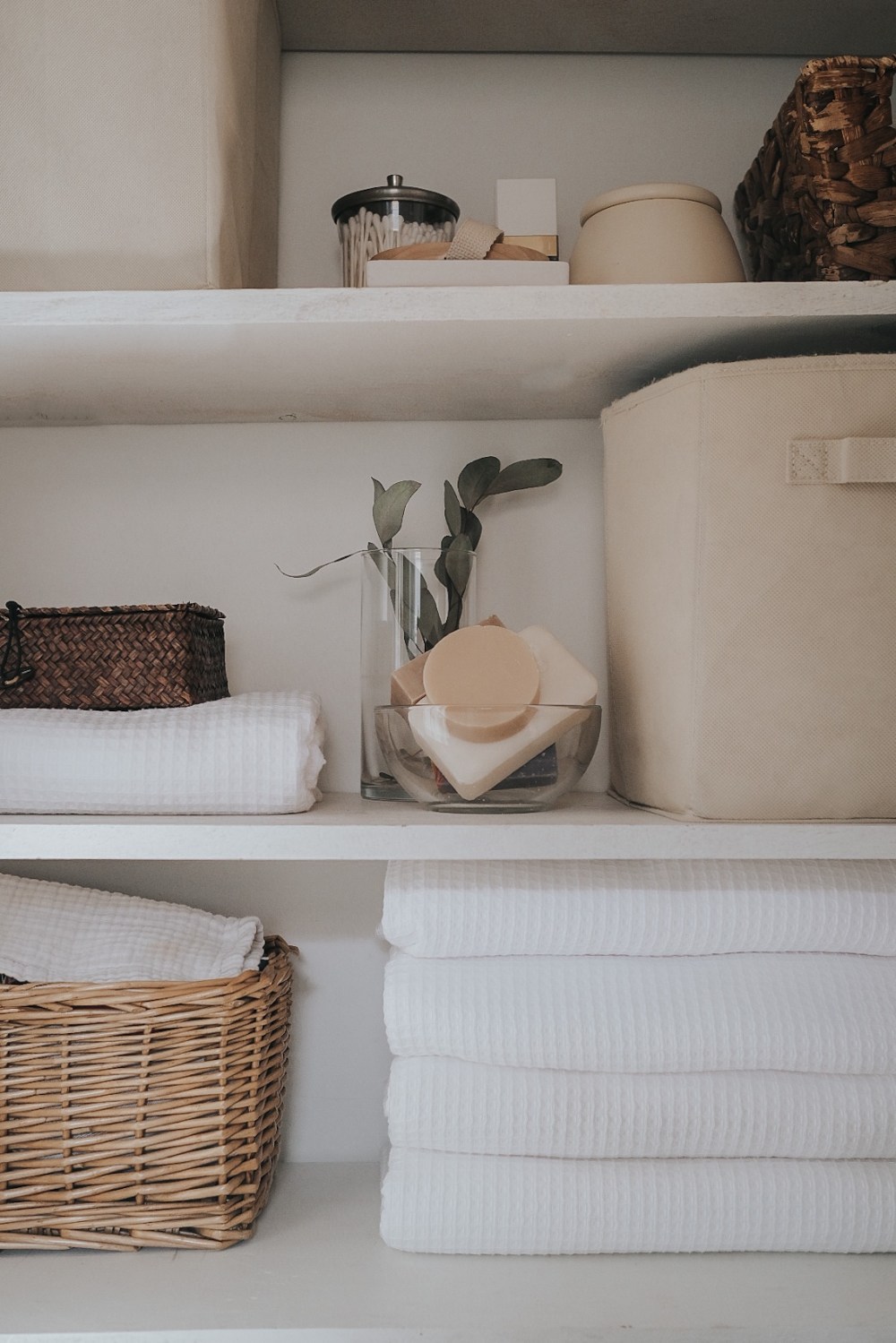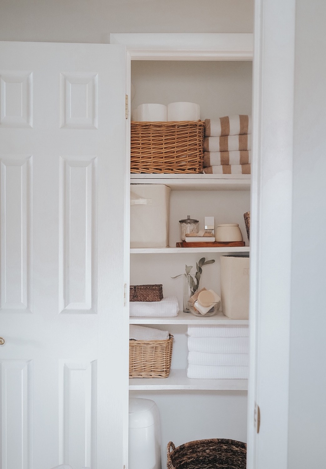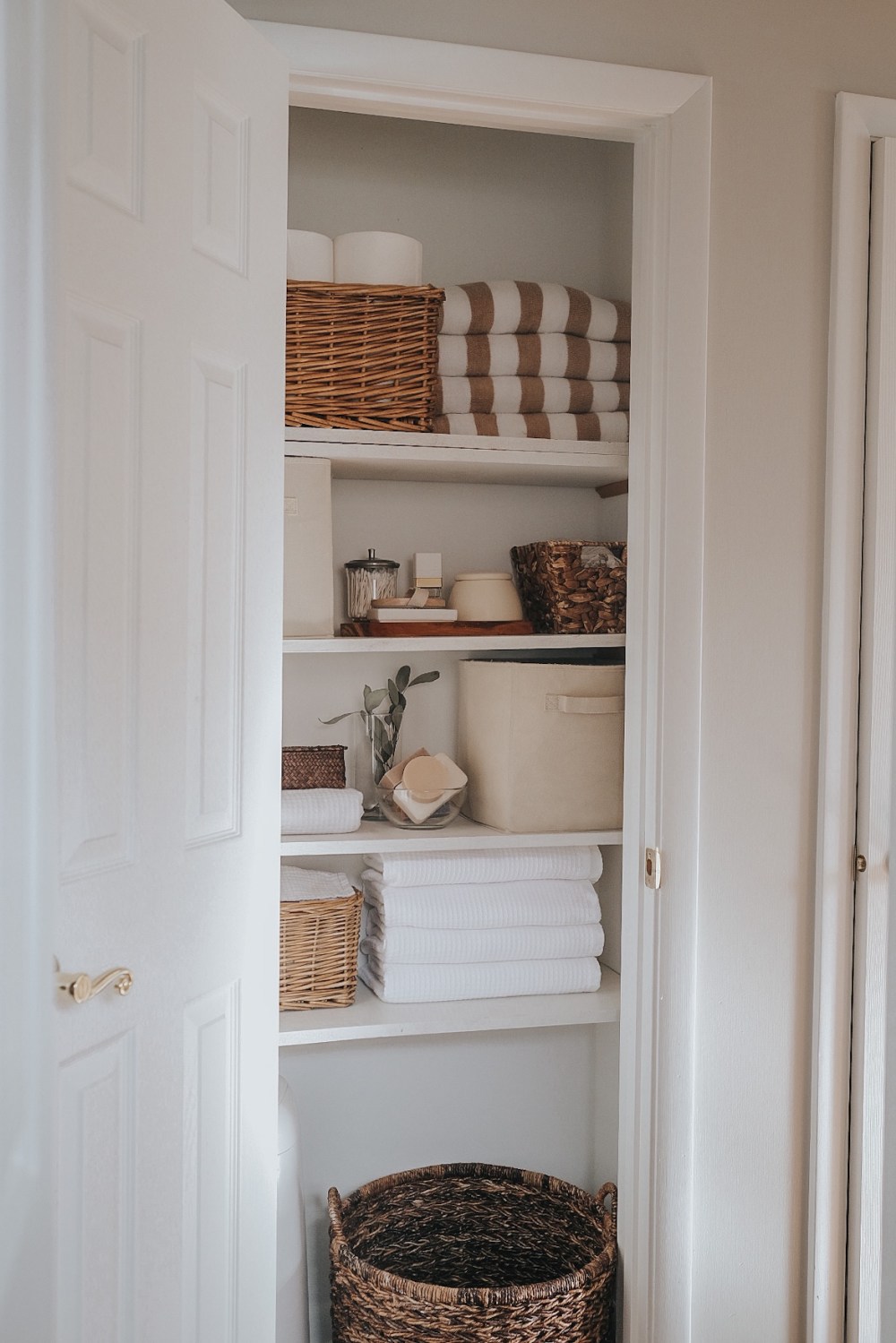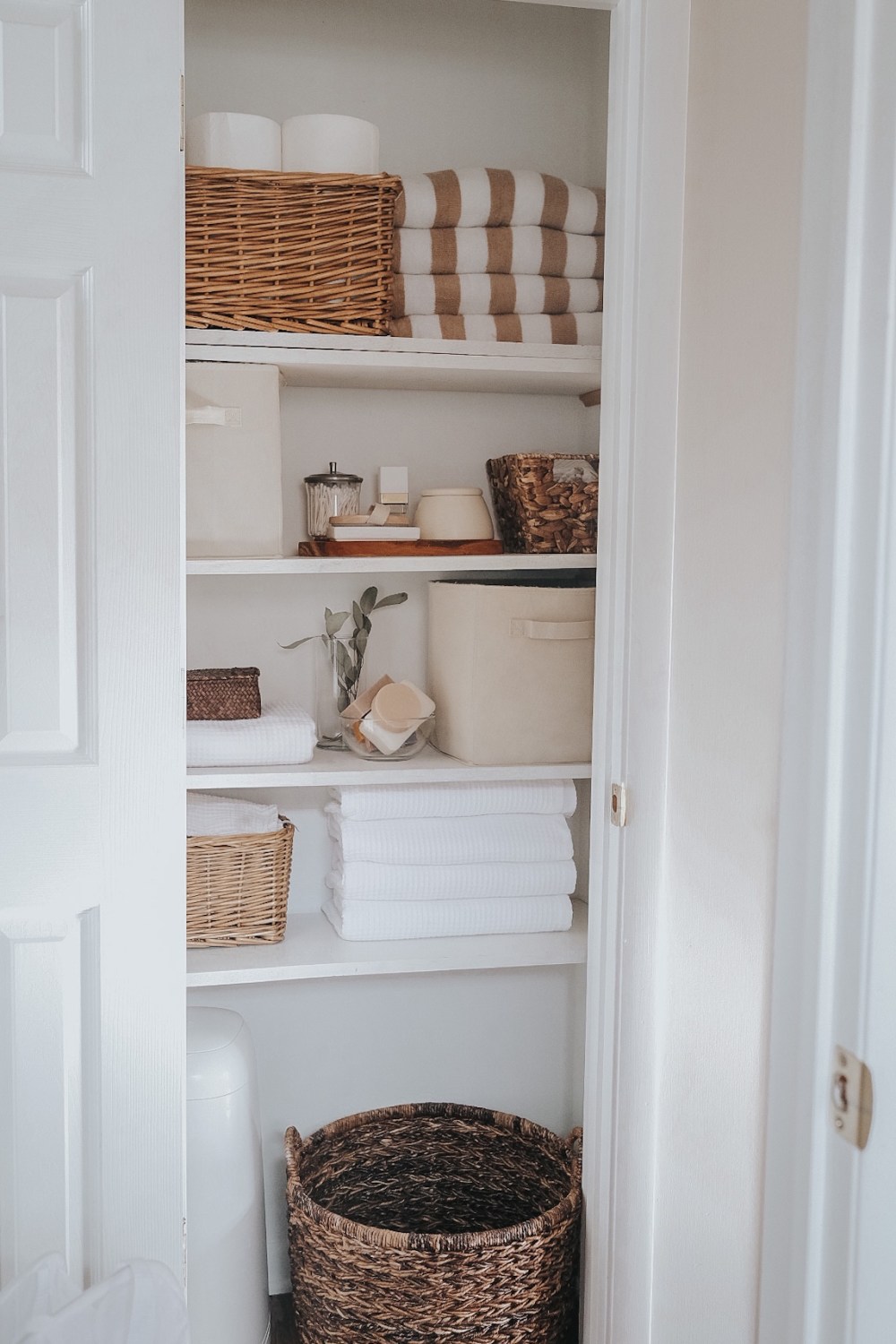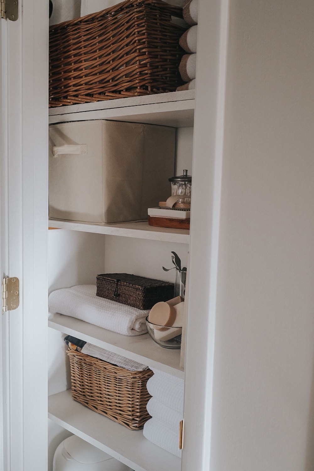 The linen closet feels like a work of art to me. And an exact representation of my goals for the rest of the house: simple, layered, textured, chic but simple. Refined and timeless.